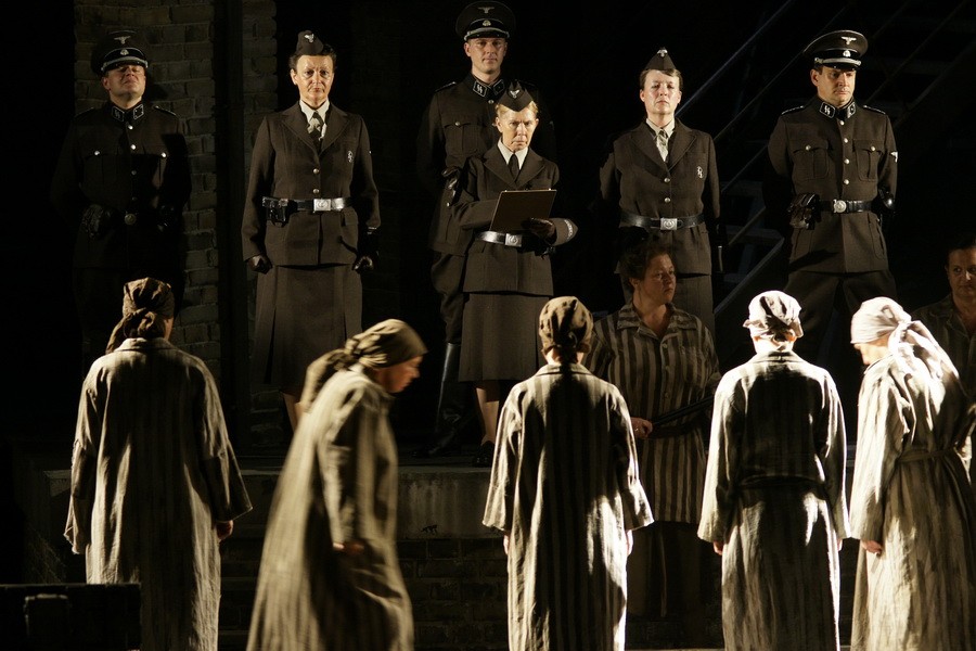 Режиссёр Дэвид Паунтни и сценограф Йохан Энгельс, согласно основным концепциям либретто, помещают светлые послевоенные сцены на верхнюю палубу роскошного лайнера. И, словно по кругам ада, память отправляет главную героиню – надзирательницу концлагеря – вниз, в мрачный трюм воспоминаний об Освенциме. Прибытие новых заключённых, проявления воли к жизни, скромный праздник по случаю дня рождения одной из узниц, сомнения в существовании Бога, скучающие охранники и до оторопи сухое перечисление идентификационных номеров людей, обречённых на смерть.