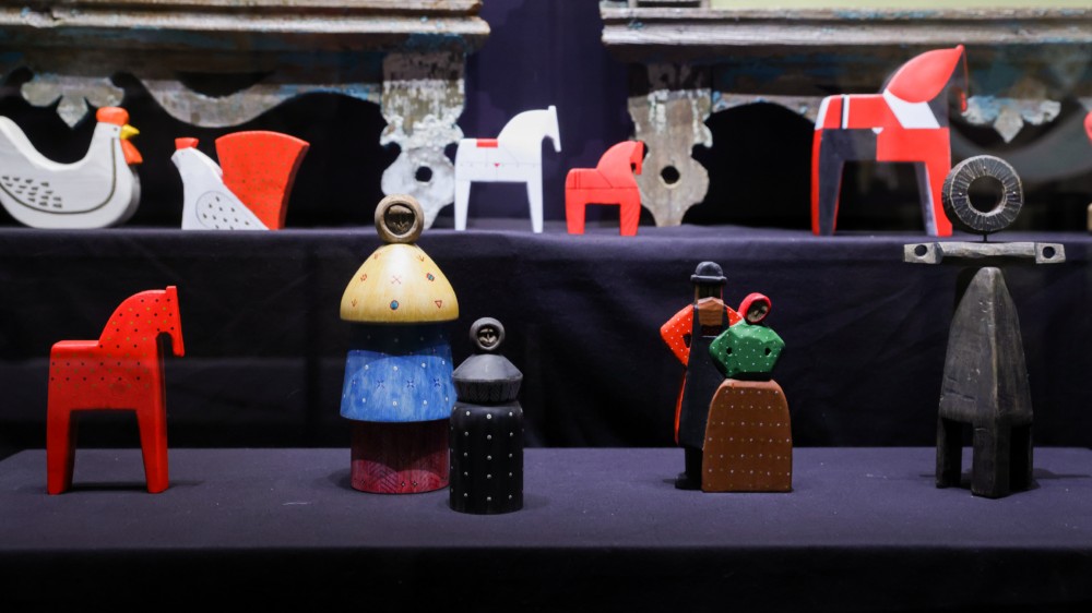 Экспозиция прослеживает эволюцию русской игрушки — от традиционных кукол-мотанок и деревянных панок, охранявших домашний очаг, через матрешку, возникшую в конце XIX века, но ставшую узнаваемым символом народной игрушки, до советских неваляшек и других знакомых с детства предметов. Каждый объект на выставке представляет современное художественное переосмысление игрушки — возрождение древнейших резных деревянных кукол-оберегов, бытовавших на Русском Севере; детские воспоминания о дымковской игрушке, плюшевом медведе и лошадках-качалках, выраженные в живописи и фарфоре; рождественские символы, бывшие всегда неотъемлемой частью зимних праздников. Игрушка становится предметом искусства и художественным высказыванием, возвращая себе изначальное символическое значение.