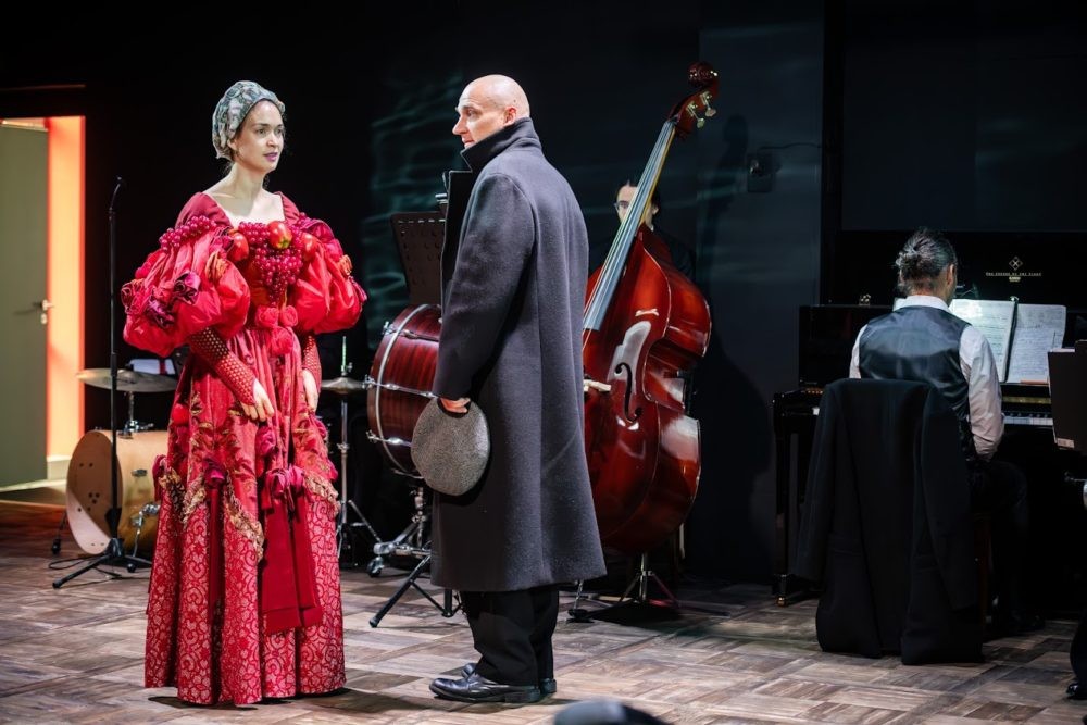 Объектом рефлексии для режиссера становится время, конец 1930-х. Так же, как в «Чайке», предыдущей работе в Александринском театре, в новом спектакле нарратив — не главное. Язык сценического повествования у Павловой ассоциативен. Здесь реплики героев уравнены со всем аудиальным многообразием, складывающимся из звуков шагов, передвигаемых стульев, тиканья часов, обрывков мелодий, песен, кусочков оперных арий, барабанной дроби и так далее.